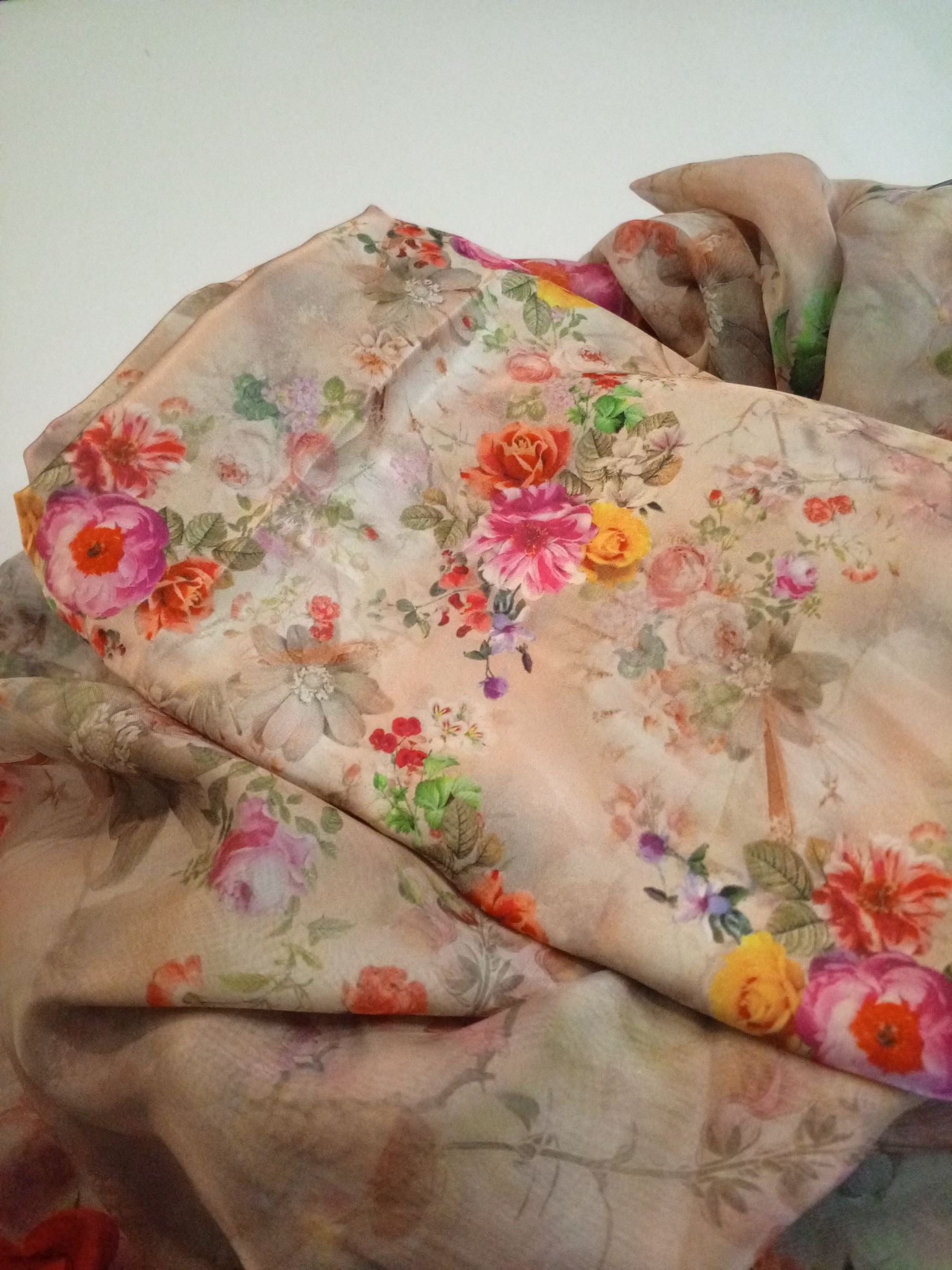 Experience the luxury in this elegant silk 2-piece suit. This ultimate pair of floral chiffon dupatta and digital printed silk shirt provides a chic look for any occasion.